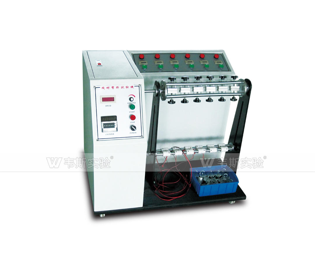 將試料固定在夾具上,并加一定荷重,試驗(yàn)時(shí)夾具左右擺動(dòng),經(jīng)一定次數(shù)后,檢視其斷線(xiàn)率;或至無(wú)法通電時(shí),查看其總計(jì)擺動(dòng)次數(shù)。本機(jī)能自動(dòng)計(jì)數(shù),試料彎折至斷線(xiàn)無(wú)法通電時(shí),并能自動(dòng)停機(jī)。