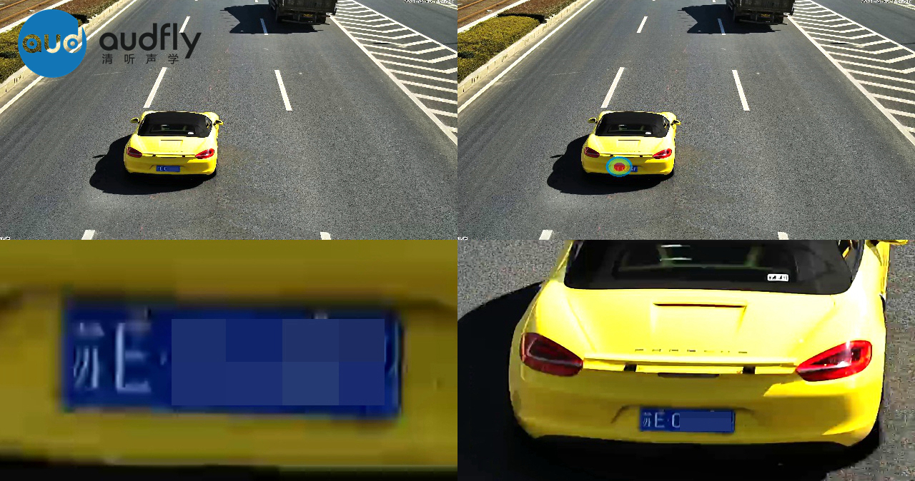 1、當有車輛違法鳴笛了,設備基于先進的聲音定位技術,會自動排除復雜的環境聲干擾,精準定位該車輛,2s即可快速識別車牌信息。