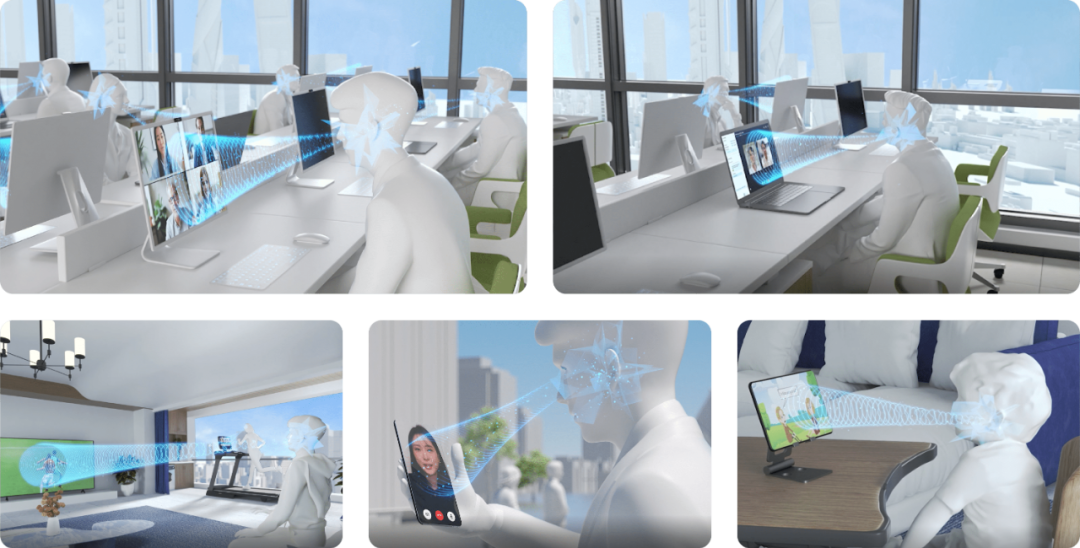 如今,折疊輕薄、可變形的柔韌顯示屏已成為顯示面板市場(chǎng)的一大流行趨勢(shì),但目前仍面臨的挑戰(zhàn)是如何在可折疊、輕薄的顯示屏上放置音響?如何讓整個(gè)顯示屏成為音響?集成Focusound Screen™利用屏幕本身作為發(fā)聲單元,營(yíng)造超越整個(gè)屏幕的全域音效,實(shí)現(xiàn)“音畫合一”,提供360°全環(huán)繞沉浸式音效體驗(yàn),可廣泛應(yīng)用于筆記本電腦、電競(jìng)顯示、會(huì)議系統(tǒng)等,私域聲場(chǎng)和空間音效的打造,賦予顯示產(chǎn)品基于終端場(chǎng)景的創(chuàng)新價(jià)值,給用戶帶來視聽一體的極致體驗(yàn),從場(chǎng)景痛點(diǎn)出發(fā),讓視聽體驗(yàn)更個(gè)性化、智能化、隱私化。