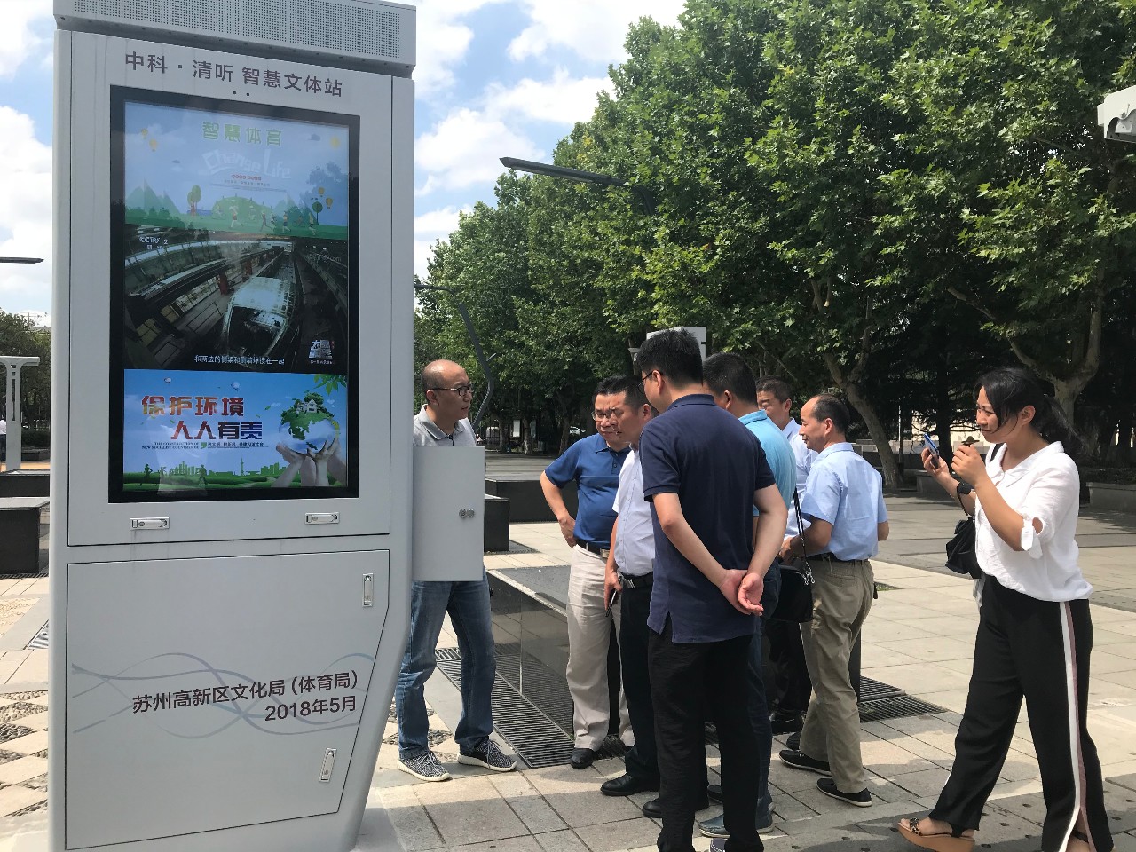 會議開始前,銅官區(qū)各位領導在清聽聲學常務副總趙峰的帶領下,前往位于蘇州高新區(qū)的新區(qū)公園與馨泰花苑兩個智慧體育示范區(qū)體驗已經(jīng)部署完成的智慧廣場舞系統(tǒng)。