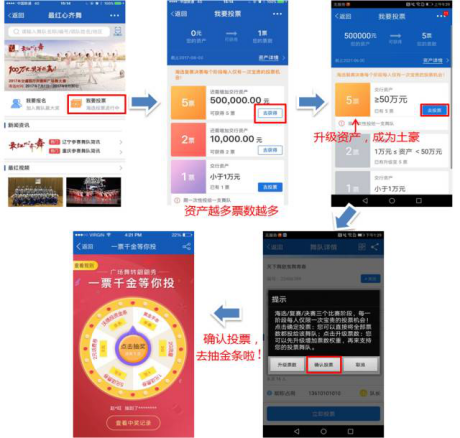 在海選階段,每位客戶只能投一次票,投票完畢后即使資產(chǎn)增加,也不能進(jìn)行補(bǔ)投票,是否要做大權(quán)在握的土豪,投票前要確認(rèn)清楚哦。