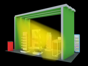 圖中黃色區域為聚音寶的聲音傳播區域,基本上整個展位都覆蓋到了,也就是說每個來展位的人,都能自動接收到客戶的產品信息。