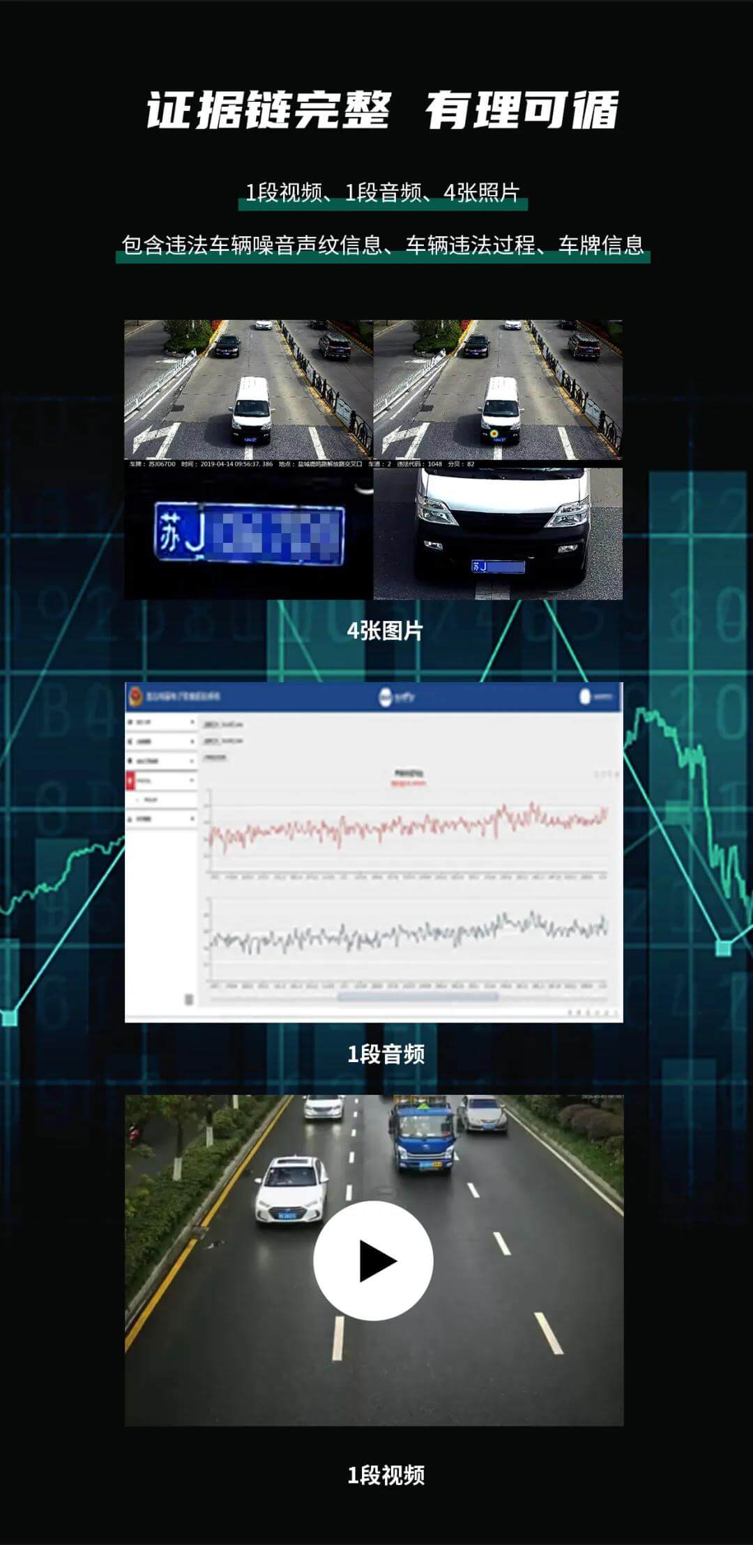 現(xiàn)場,改裝車在眾人的注目下拉響了油門,幾乎在同一時(shí)間,系統(tǒng)后臺(tái)就收錄了該改裝車輛的車牌、車型等車輛信息,同時(shí)還可以查看含有車輛噪音超標(biāo)聲像圖的違法違章過程視頻。取證過程客觀公正,證據(jù)鏈完整,為交警提供科學(xué)的執(zhí)法依據(jù);讓違法鳴笛車輛和噪音超標(biāo)車輛無處可逃。