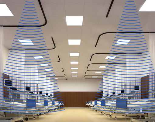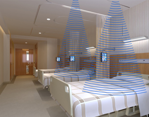 指向性揚聲器可以用在醫院病房,如下圖: